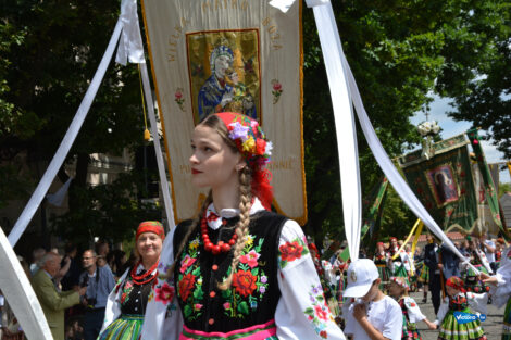 Po Mszy Świętej na ulice Łowicza do czterech ołtarzy wyruszyła procesja, w której licznie udział wzięli mieszkańcy Łowicza i powiatu ubrani w łowickie stroje ludowe.