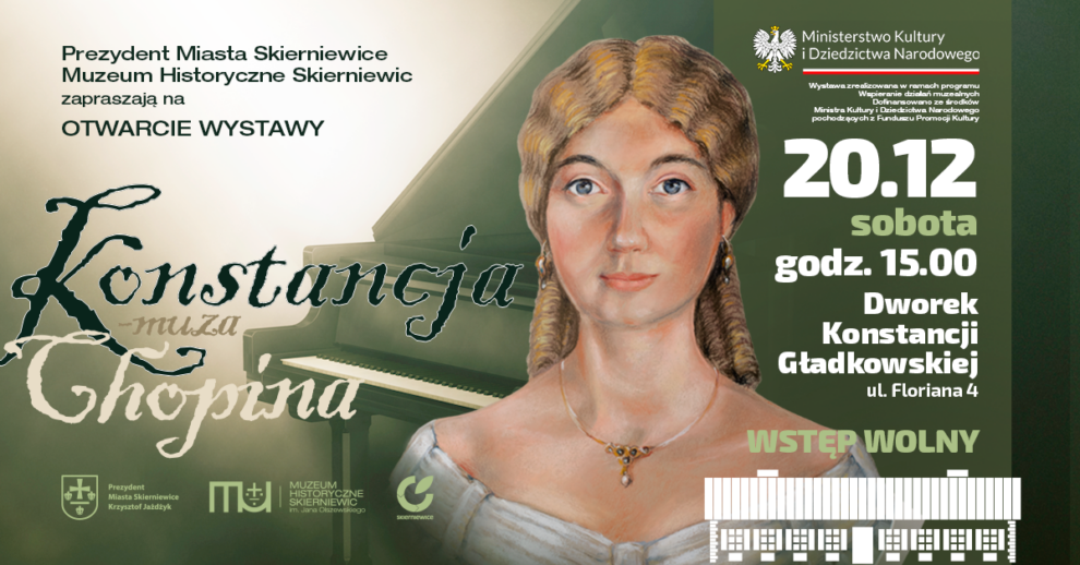 Już w najbliższą sobotę w Skierniewicach odbędzie się otwarcie wystawy stałej poświęconej Konstancji Gładkowskiej – śpiewaczce operowej, pierwszej miłości i młodzieńczemu natchnieniu Fryderyka Chopina. Ekspozycja zatytułowana „Konstancja – muza Chopina” zostanie udostępniona w Dworku przy ulicy Floriana. Wystawa prezentuje życie i działalność artystki na tle epoki oraz historię zabytkowego obiektu, w którym spędziła ostatnie lata życia. Początek wydarzenia zaplanowano na godzinę 15.