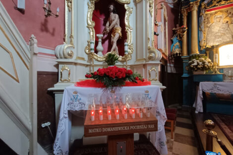 Sanktuarium w Domaniewicach ustanowione zostało w 1975 roku przez kardynała Stefana Wyszyńskiego. Świątynia należy do miejscowej parafii św. Bartłomieja Apostoła. Powstanie kaplicy datuje się na lata 1631-33. Została ufundowana przez Jakuba i Wojciecha Celestów.